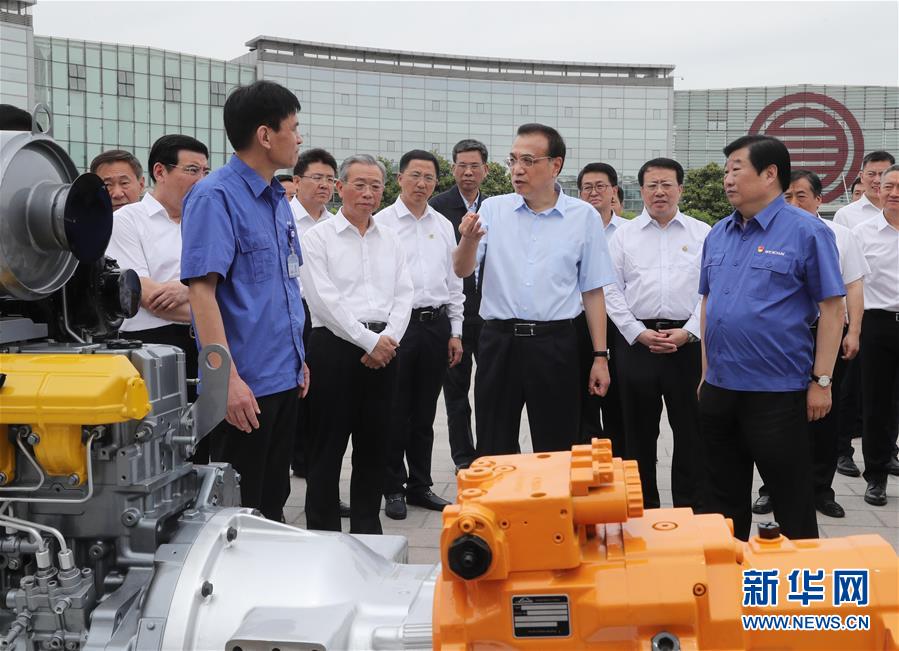 这是5月24日,李克强来到潍柴集团了解企业减税降费和研发生产情况。新华社记者 刘卫兵 摄