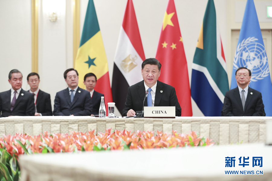 习近平在讲话中指出,去年9月举行的中非合作论坛北京峰会开启了中非关系新时代。中方珍视中非传统友谊。无论国际形势如何变化,无论个别势力如何干扰,中非合作共赢、共同发展的初心不会改变,中非携手构建更加紧密的命运共同体的决心不会动摇。