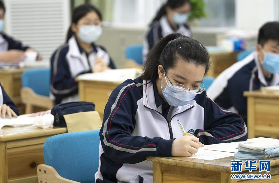 5月6日,湖北省武昌实验中学高三年级的学生在上课。 当日,武汉首批121所学校高三年级正式复学,学生返校上课。据了解,开学前,所有校园均开展了卫生清洁和预防性消杀工作,所有学生返校前须进行健康检测。 新华社记者 熊琦 摄