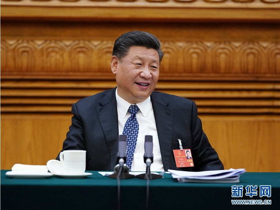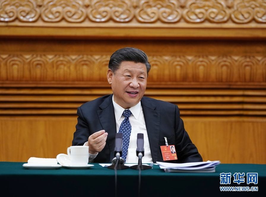 5月24日,中共中央总书记、国家主席、中央军委主席习近平参加十三届全国人大三次会议湖北代表团的审议。 新华社记者 黄敬文 摄