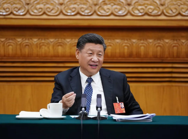 5月24日,中共中央总书记、国家主席、中央军委主席习近平参加十三届全国人大三次会议湖北代表团的审议。新华社记者 黄敬文 摄