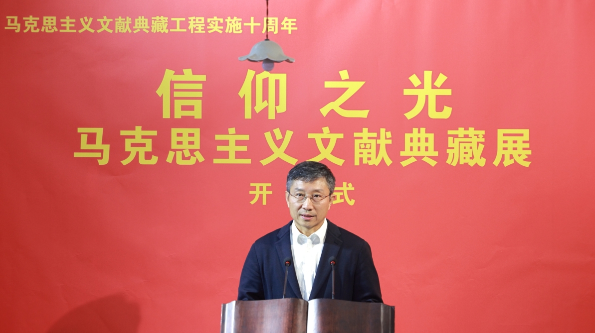 洪大用在致辞中指出,马克思主义文献资料典藏工程是马克思主义理论研究和建设工程资助实施的重大项目。十年来,典藏工程坚持为党藏典、藏用并举,系统化收藏、复制马克思主义经典作家著作手稿和海外藏中共珍贵历史档案,推进典藏成果利用宣传展示,为推动马克思主义学习研究宣传作出积极贡献。新征程上,马克思主义文献资料典藏工程使命光荣、责任重大。要坚持以习近平新时代中国特色社会主义思想为指导,深入学习贯彻习近平文化思想,高标准实施典藏三期工程,加大珍贵文献查访搜寻、复制购藏、数字化运用、研究阐释、宣传普及等工作力度,深化典藏工程国际交流合作,持续打造与大党大国地位相适应的马克思主义文献典藏体系,为坚持“两个结合”,深化党的创新理论体系化学理化研究阐释,推进马克思主义中国化时代化提供更加坚实的文献支撑。此次展览主题鲜明、内容丰富、布展精美,具有很强的吸引力和感染力。在北大红楼这一重要红色遗址设展,赋予展览更加鲜明的政治意义、历史意义和教育意义,相信展览一定能发挥很好的宣传教育作用。