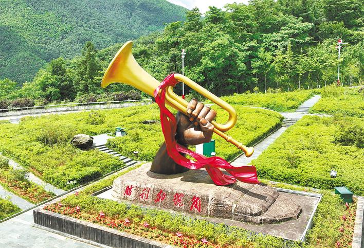 2023年6月28日在井冈山拍摄的“胜利的号角”雕塑(无人机照片)。(新华社记者万象摄)