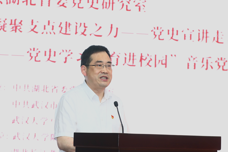 为弘扬伟大抗战精神,纪念中国人民抗日战争暨世界反法西斯战争胜利80周年,6月30日,省委党史研究室党史宣讲走基层暨“强国复兴有我——党史学习教育进校园”音乐党课活动走进武汉大学,追忆抗战壮阔历程。