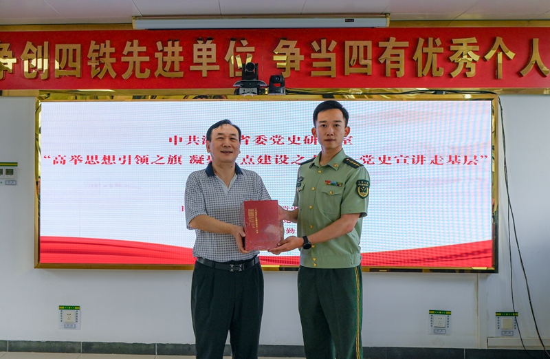 在中国人民解放军建军98周年之际,7月29日,省委党史研究室党史宣讲走基层活动走进武警湖北总队武汉支队某中队,大力弘扬大别山精神、抗洪精神和抗疫精神,引导基层官兵汲取强军兴军的智慧和力量。