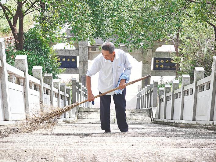 扫落叶、拭墓碑……“只要走得动,我就会坚持下去。”吴启安的声音沙哑,却字字铿锵。