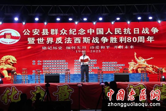 在中国人民抗日战争暨世界反法西斯战争胜利80周年之际,由公安县委组织部、县委宣传部主办,县老促会等单位承办,县公共文化服务中心等单位协办的专场文艺演出近日在荆江公园隆重举行。整场演出以丰富多彩的艺术形式,带领全县群众重温烽火岁月,缅怀革命先烈,凝聚起传承伟大抗战精神、共建美好家园的磅礴力量。