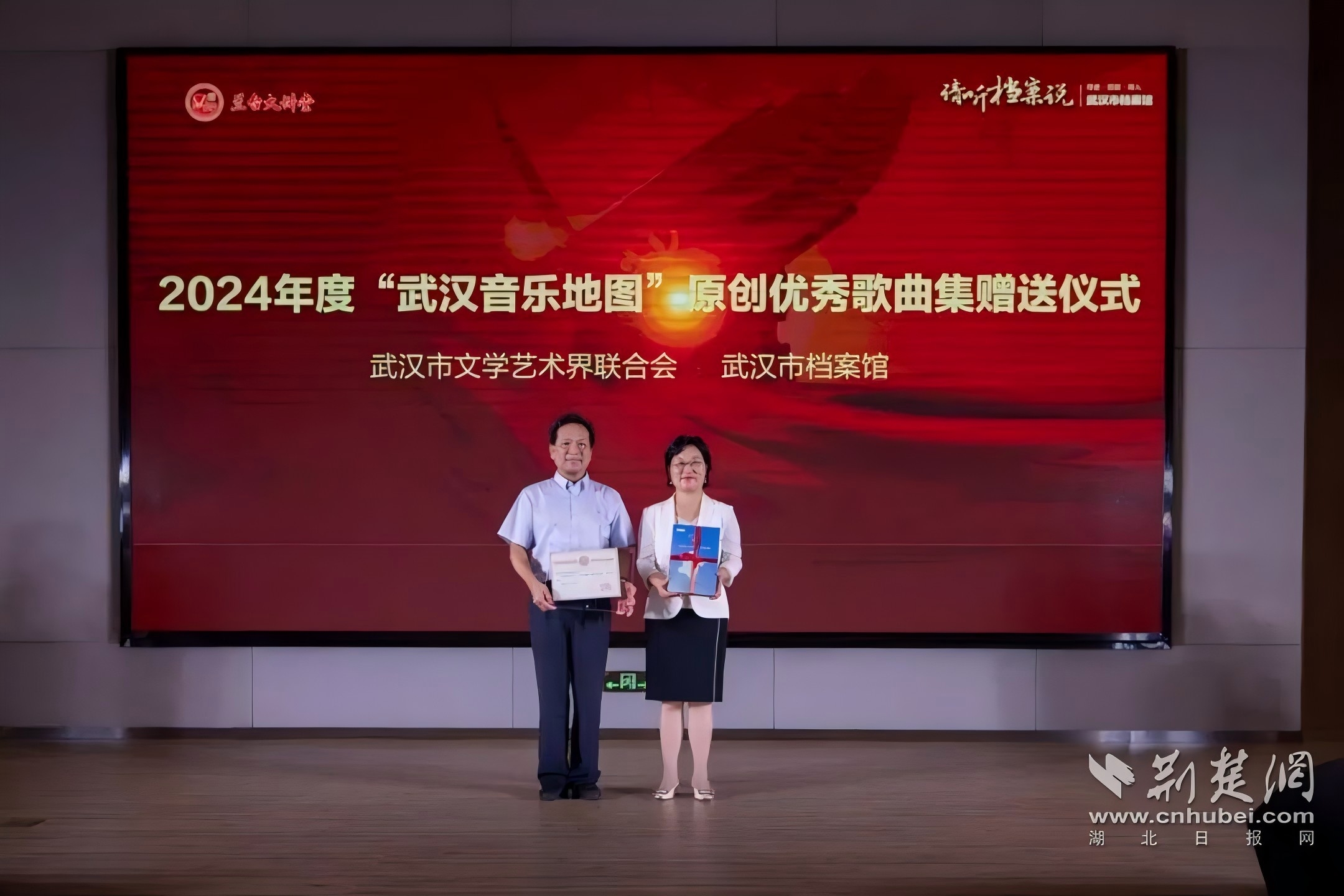 近年来,武汉市文学艺术界联合会、长江日报社共同主办“武汉音乐地图”系列活动,已成为全新的城市文化名片。继去年武汉市文联向市档案馆赠送2023年“武汉音乐地图”10首原创优秀歌曲音视频后,音乐与档案再续前缘;此次,2024年度“武汉音乐地图”10首原创优秀歌曲集入藏市档案馆。