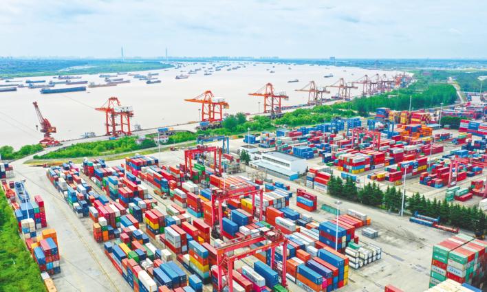 繁忙的武汉阳逻港,2023年吞吐量达230万标箱。 (湖北日报全媒记者 李溪 摄)