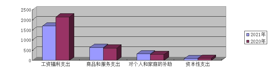 2021年,我室支出决算数2746.71万元,较上年支出决算数3152.76万元,减少406.05万元,减幅12.88%。其中,按支出性质分,基本支出2078.36万元,较上年的2421.06万元减少342.70万元,减幅14.15%;项目支出668.35万元,较上年的731.70万元减少63.35万元,减幅8.66%。按支出经济分类分,工资福利支出1693.77元,较上年的2144.44万元减少151.11万元,减幅21.04%;商品和服务支出641.54万元,较上年的611.46万元增加30万元,增幅4.91%;对个人和家庭的补助321.78万元,较上年289.02万元增加32.76万元,增幅11.33%;资本性支出89.62万元,较上年的107.84万元减少18.22万元,减幅16.90%。(见图2、3)