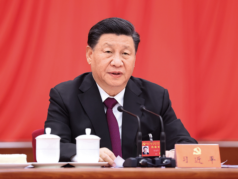 中国共产党第十九届中央委员会第六次全体会议于2021年11月8日至11日在北京举行。中央委员会总书记习近平作重要讲话 鞠鹏摄/本刊