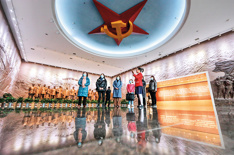 2021年1月28日,参观者在遵义会议纪念馆内听讲解 欧东衢摄/本刊