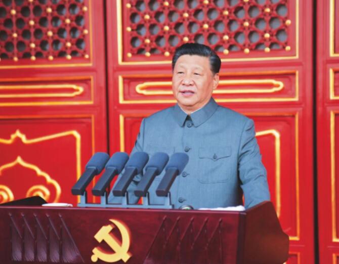 2021年7月1日,庆祝中国共产党成立100周年大会在北京天安门广场隆重举行。中共中央总书记、国家主席、中央军委主席习近平发表重要讲话。图/新华社记者 李学仁 摄