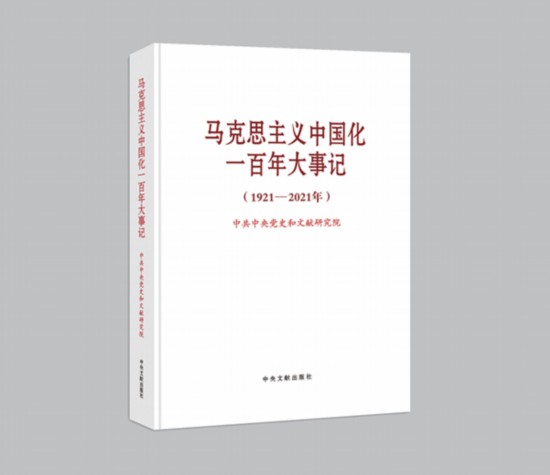 2022年5月,中共中央党史和文献研究院编写的《马克思主义中国化一百年大事记(1921—2021年)》出版发行。该书采用编年体形式,以翔实的文献资料,全面反映了马克思主义中国化既一脉相承又与时俱进的理论品质和宝贵经验,有助于广大党员、干部、群众增强用习近平新时代中国特色社会主义思想武装头脑、指导实践、推动工作的思想自觉、政治自觉、行动自觉。图为《马克思主义中国化一百年大事记(1921—2021年)》一书。