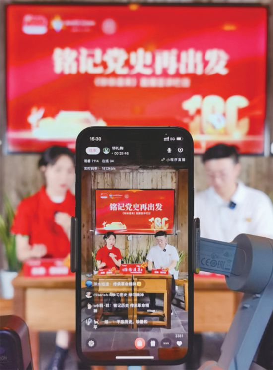 浙江省衢州市“8090新时代理论宣讲团”是一支由“80后”、“90后”年轻群体组成的宣讲队伍,他们深入企业、农村、机关、校园、社区、网络直播间等,用年轻人的视角和表达方式宣讲党的创新理论,得到广泛好评。图为2021年6月30日,宣讲团成员正在进行题为《铭记党史再出发》的线上宣讲。 浙江省委宣传部供图 童玲/摄