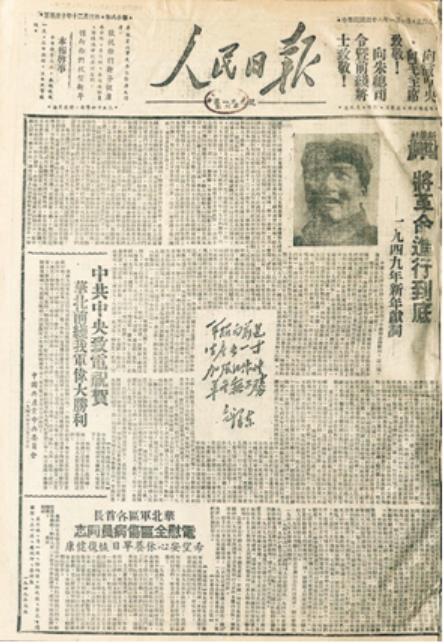 1949年1月1日,《人民日报》发表毛泽东写的新年献词《将革命进行到底》