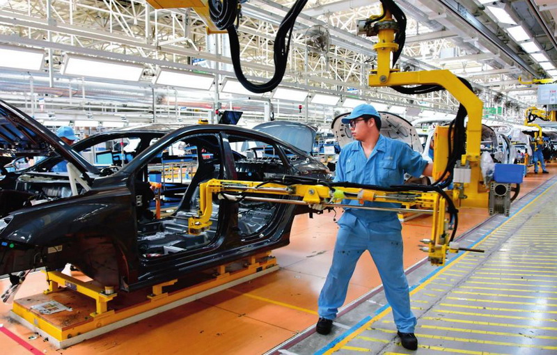 在上汽集团乘用车宁德基地总装车间,工人在新能源汽车生产线上作业(2022年8月18日摄) 魏培全摄