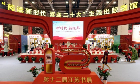 7月2日,第十二届江苏书展在苏州国际博览中心开幕。图为书展主题出版物展区。人民图片/供图