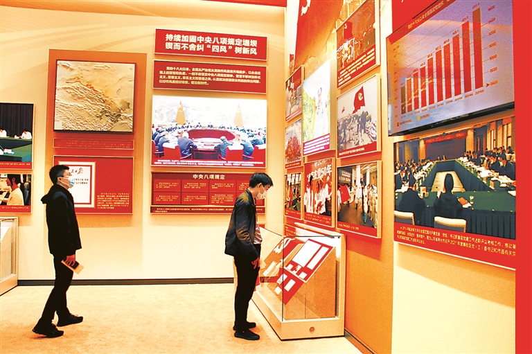全面从严治党是新时代党的自我革命的伟大实践,开辟了百年大党自我革命的新境界。图为观众在“奋进新时代”主题成就展“全面从严治党 保持党的生机活力”展区参观。本报记者 赵林 摄