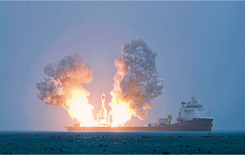 “十四五”期间,我国航天事业实现历史性、高质量、跨越式发展,航天强国建设迈出坚实步伐。图为2025年10月11日10时20分,我国太原卫星发射中心在山东海阳附近海域使用引力一号遥二运载火箭,将搭载的吉林一号宽幅02B07星、数天宇星01—02试验星顺利送入预定轨道,飞行试验任务获得圆满成功。新华社发郭金祺/摄