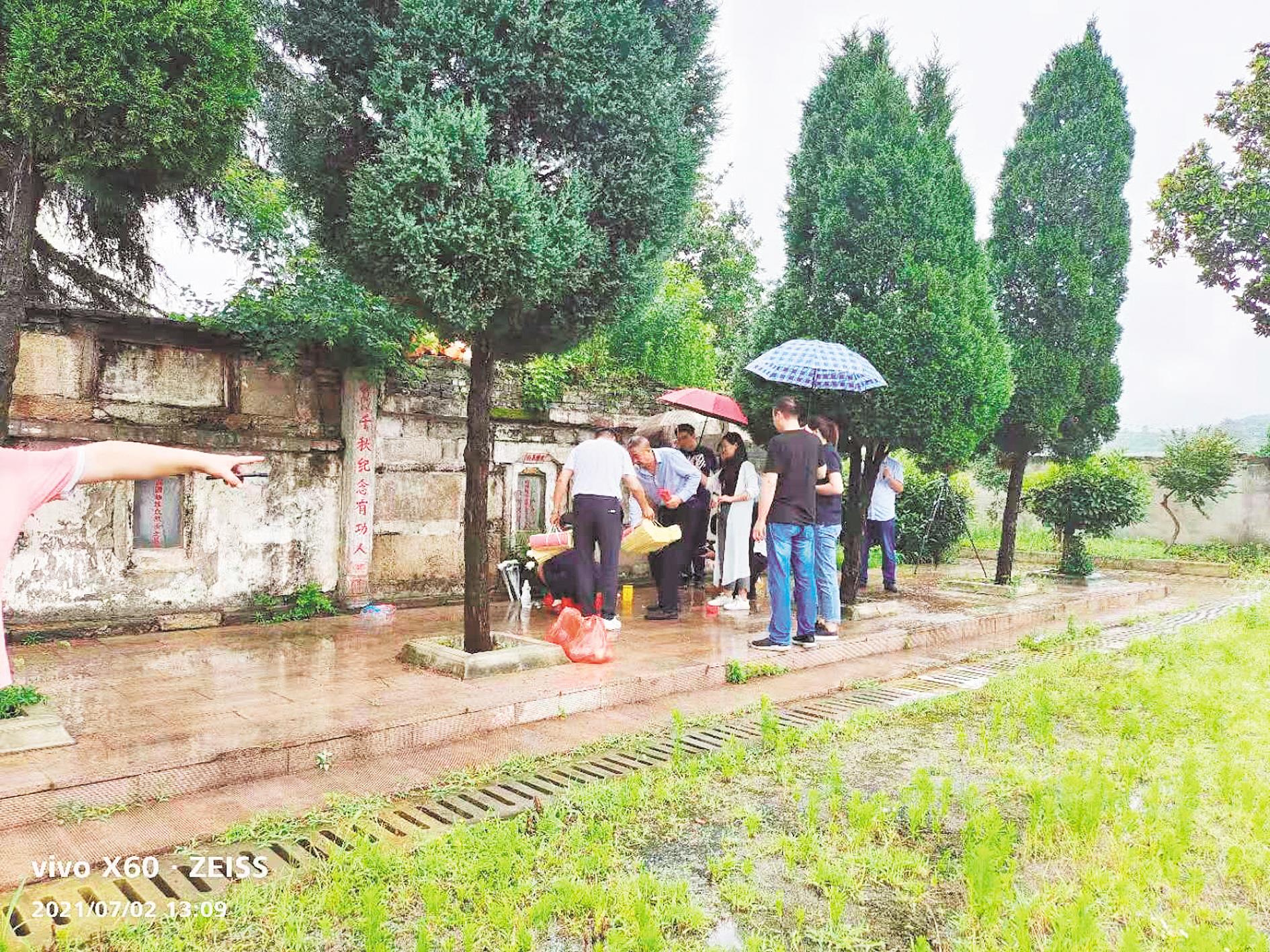 7月2日,王殿禄烈士的7位亲人从河南商城赶到大悟县熊畈小学,冒雨祭扫。