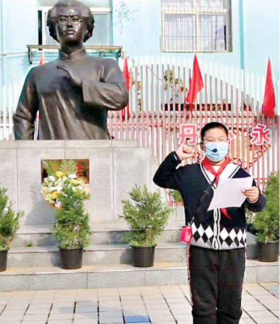 夏明翰小学少先队员代表带领大家宣誓