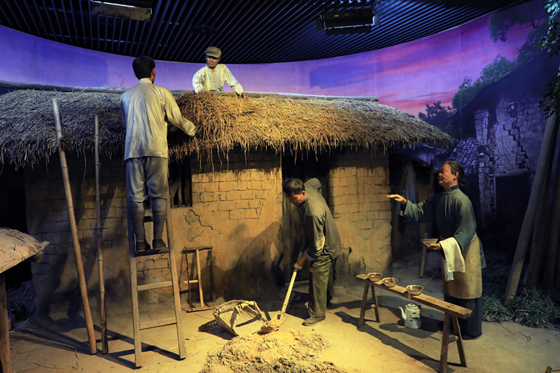 陈列馆内的大型仿生景观《苏区干部帮助贫农马荣海盖房子》 饶蓓 摄
