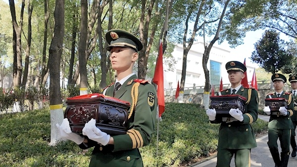 礼兵怀抱烈士棺椁缓步向前 通讯员供图