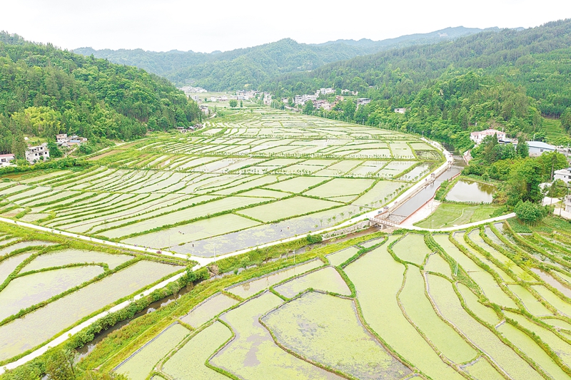 俯瞰利川市凉雾乡继昌村莼菜种植基地。蔡俊 摄
