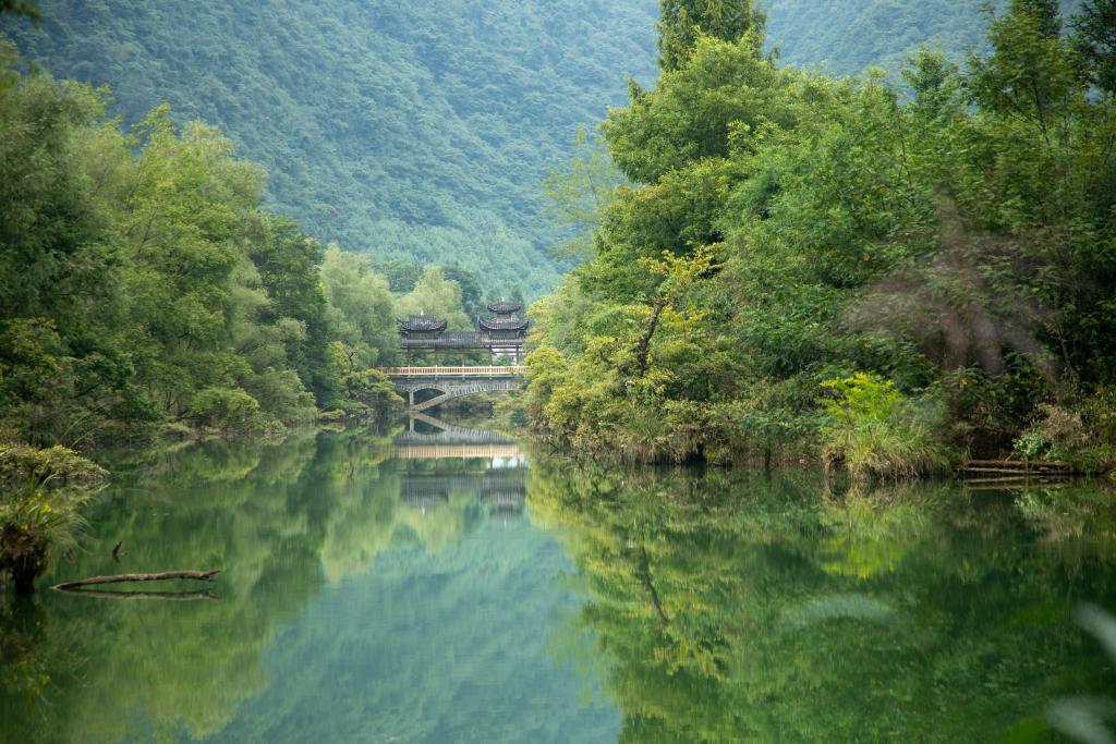 全长50公里的董家河流过董家村,形成了“树在水中生,水在树中流”的美景,宛如一幅长轴水彩画,一栋栋民宿点缀其间。