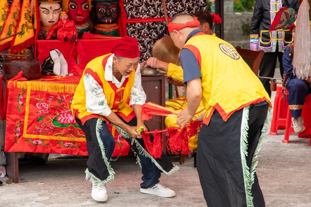 湖北省恩施州鹤峰县燕子镇董家村的傩戏演出。(龙炳洁 摄)