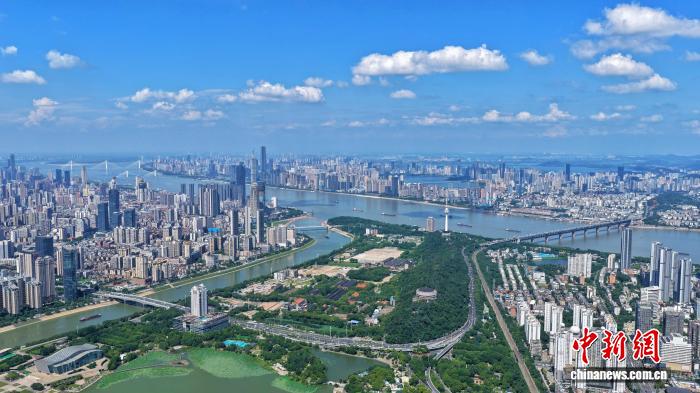 长江及其最大支流汉江在武汉交汇,形成武昌、汉口、汉阳三镇鼎立的格局。(无人机照片)周星亮摄