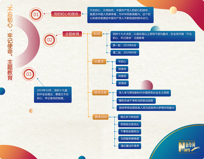 2019年,“不忘初心,牢记使命”主题教育——以守初心、担使命,找差距、抓落实为总要求,以实现理论学习有收获、思想政治受洗礼、干事创业敢担当、为民服务解难题、清正廉洁作表率为具体目标。