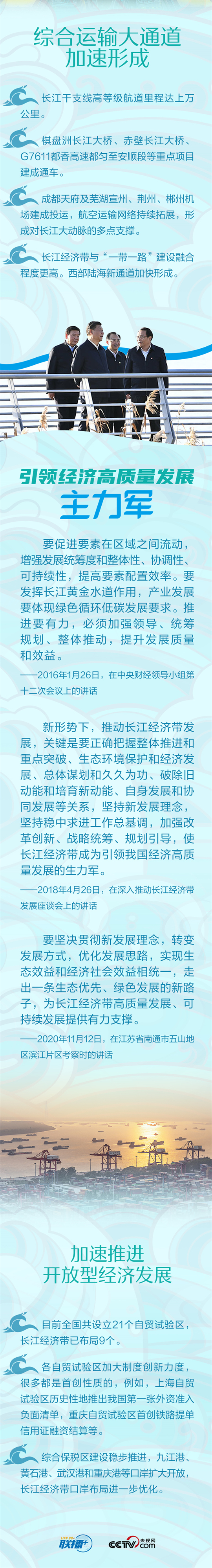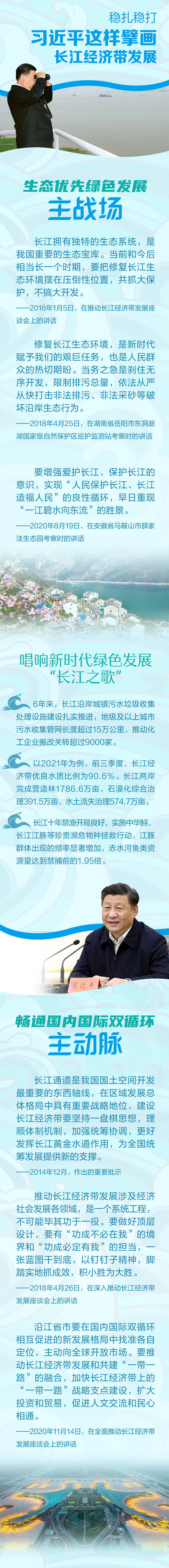 2016年以来,总书记先后来到长江上游、中游、下游沿线视察调研,三次召开座谈会,为长江经济带发展谋篇布局、把脉定向。