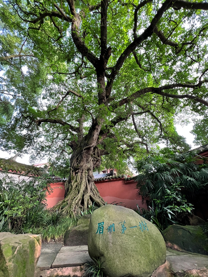 三苏祠中,号称“眉州第一树”的黄葛树。(总台央视记者杨新禹拍摄)