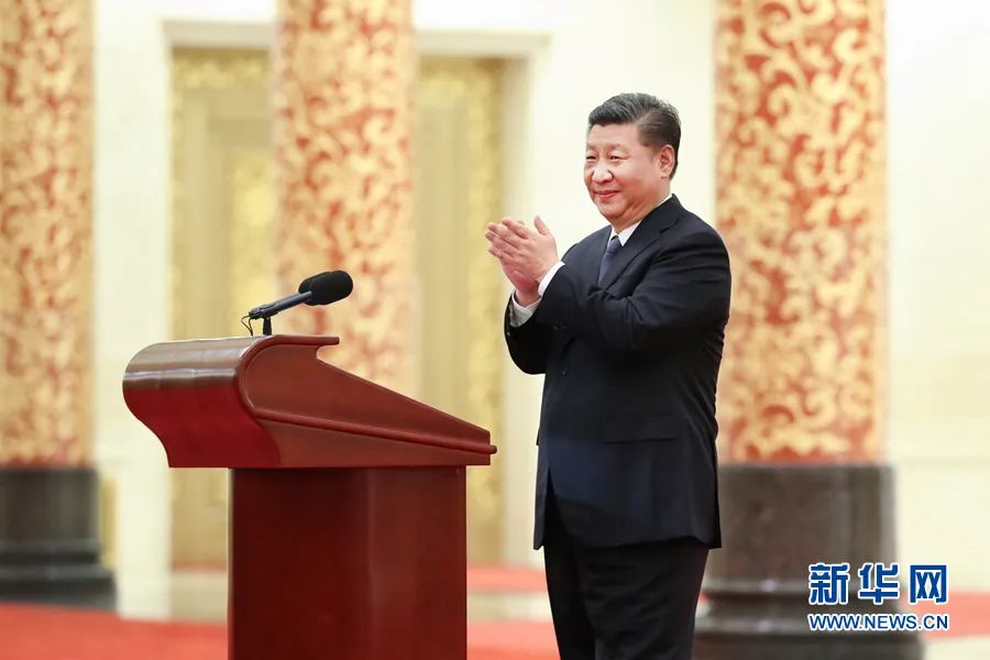 2019年2月20日,习近平等在北京人民大会堂会见探月工程嫦娥四号任务参研参试人员代表。习近平发表重要讲话。新华社记者 黄敬文 摄