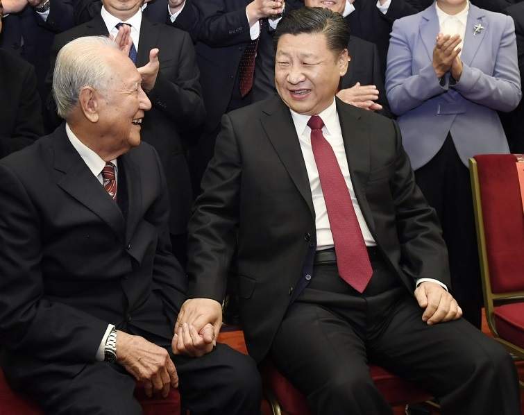2017年11月17日,习近平总书记准备同参加全国精神文明建设表彰大会的600多名代表合影时,看到中国第一代核潜艇总设计师黄旭华站在代表们中间,便握住耄耋老人的手,请他坐到自己身旁,老科学家执意不肯,他一再邀请,“来!挤挤就行了,就这样。”