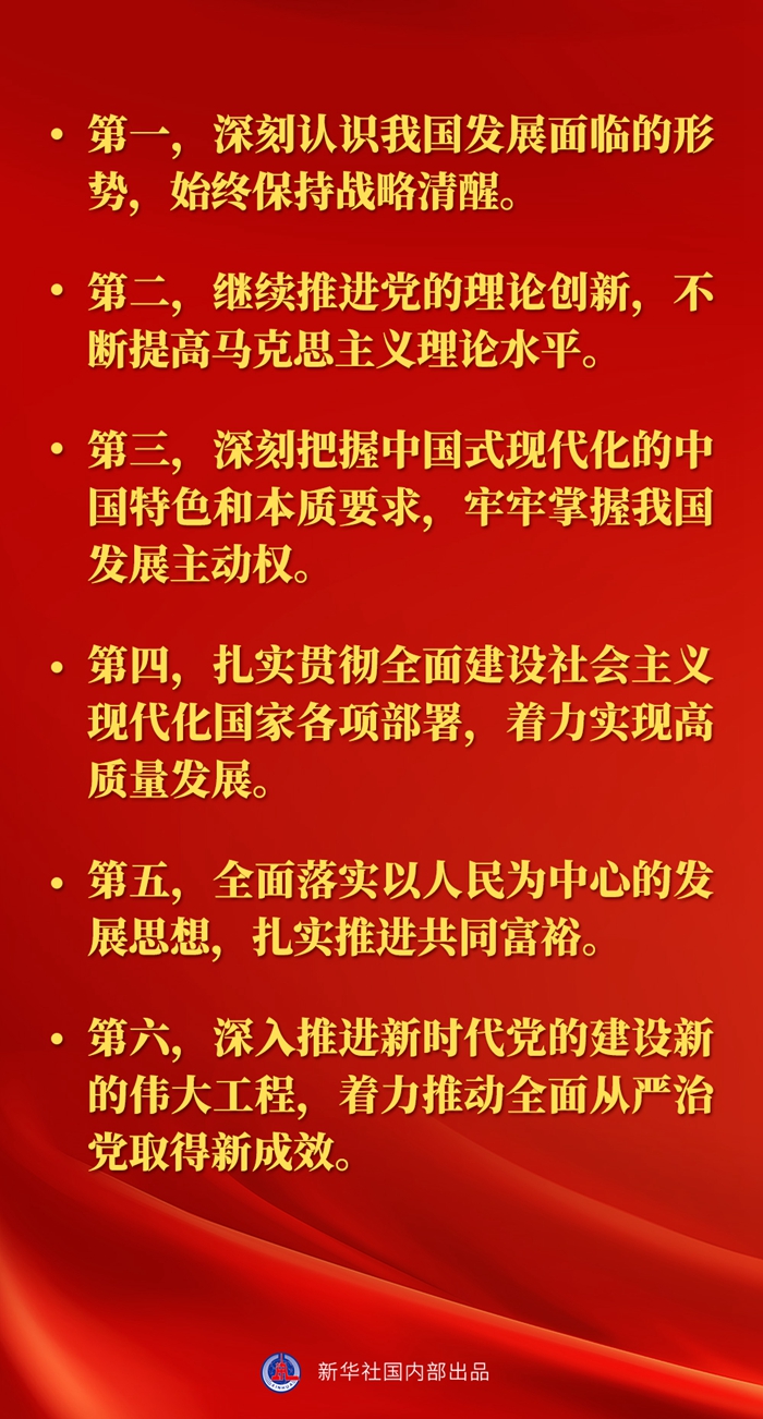 2022年10月23日,习近平总书记在党的二十届一中全会上指出,全面贯彻党的二十大精神,为实现党的二十大确定的目标任务而团结奋斗,是新一届中央领导集体的重大政治任务。当前和今后一个时期,我们要着重做好以下几方面工作——