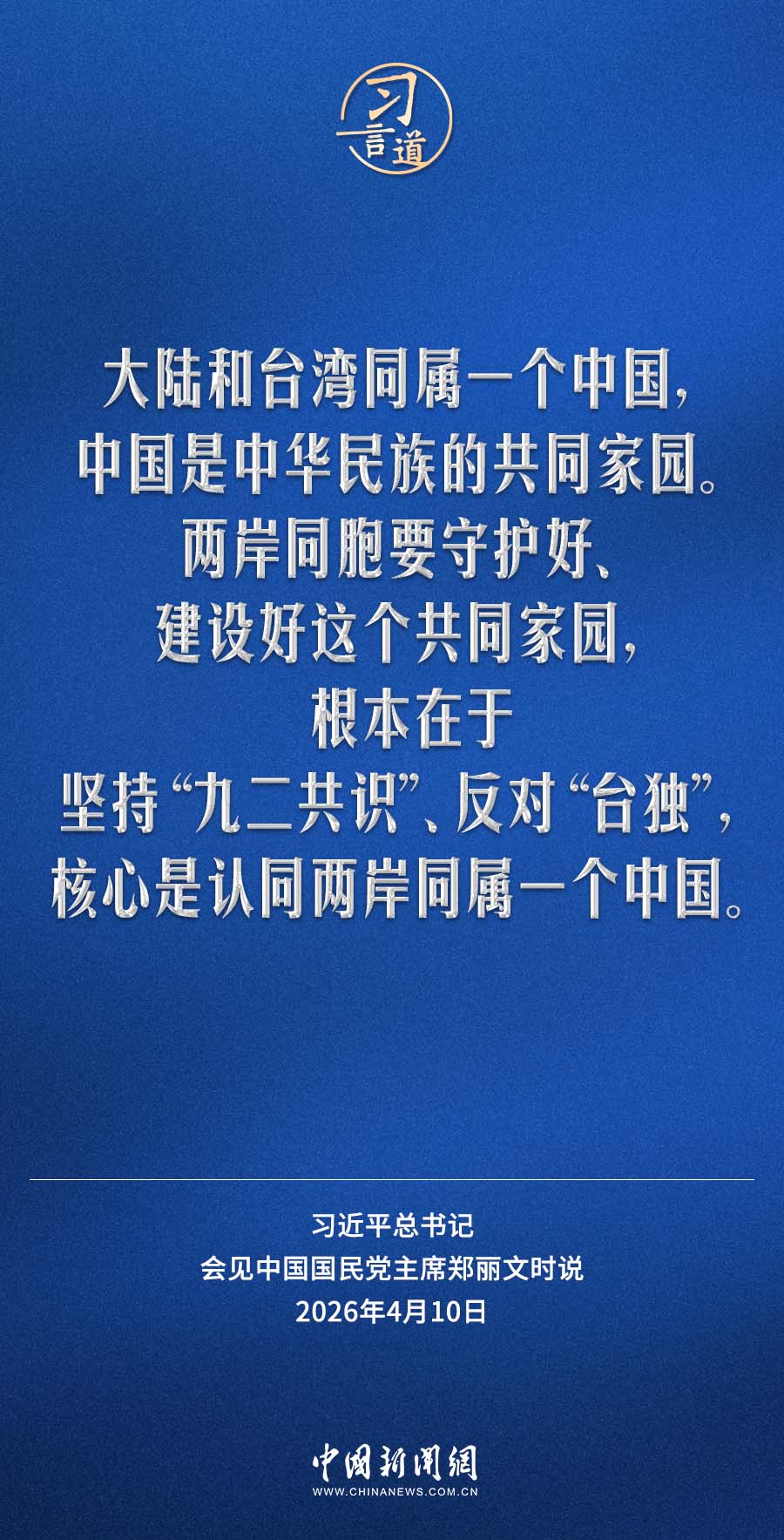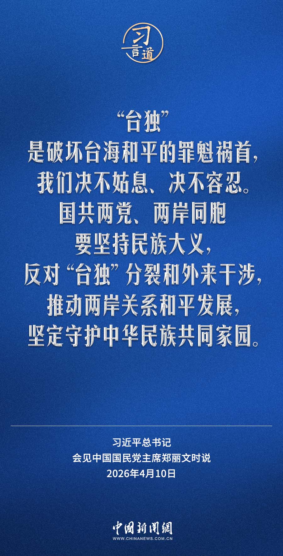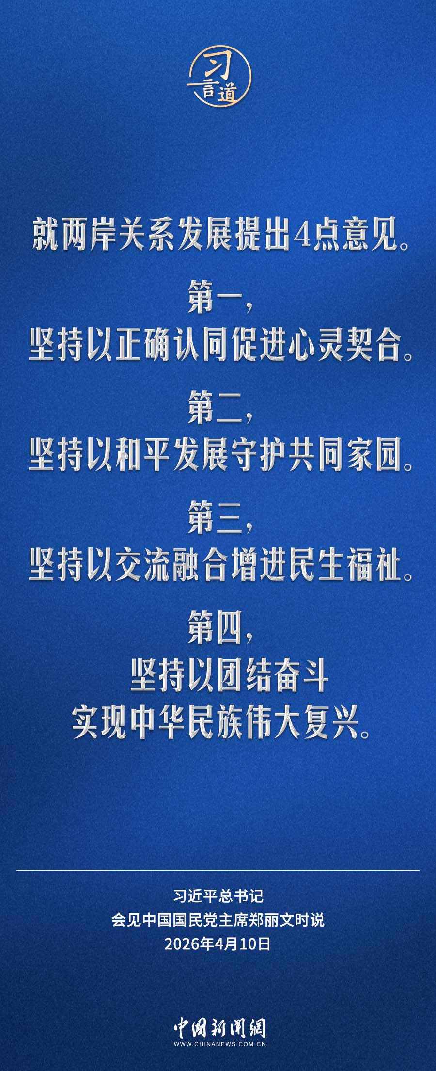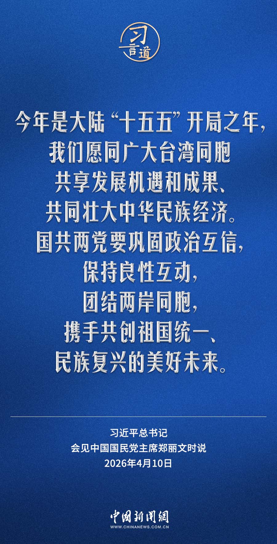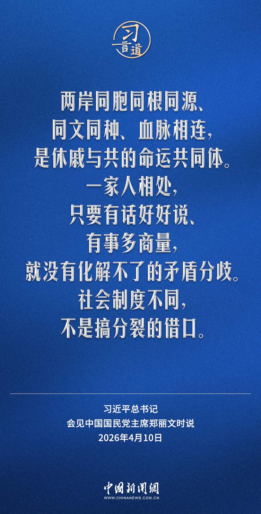4月10日,中共中央总书记习近平在北京会见了郑丽文主席率领的中国国民党访问团。他指出——